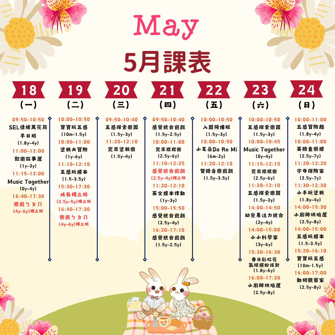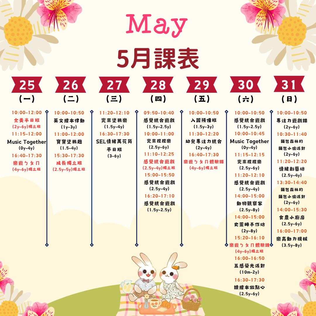 這週在兜樂玩什麼呢? 5/18 ~ 5/24 週一 MON 週二 TUE 週三 WED 週四 THU 週五 FRI 週六 SAT 週日 SUN SEL情緒萬花筒平日班|1歲8個月-6歲 $720/3點 60 分 立即預約 歡樂故事屋|1-3歲 $960/4點 60 分 立即預約 特價 Music Together-春季班|0-4歲 NT$800 NT$720 45 分 立即預約 寶寶玩五感|10個月-1歲半 $720/3點 50 分 立即預約 塗鴉大冒險|1歲-6歲 $720/3點 60 分 立即預約 五感玩繪本|1歲半-3歲半 $720/3點 60 分 立即預約 成長獨立班|2歲半-5歲 $1200/5點 2 小時 立即預約 五感探索樂園|1歲半-3歲 $720/3點 50 分 立即預約 兜來塗鴉樂|1歲半-4歲 $720/3點 50 分 立即預約 感覺統合遊戲小寶班 |1歲半-2歲半 $720/3點 50 分 立即預約 兜來捏捏樂|2歲半-6歲 $720/3點 60 分 立即預約 感覺統合遊戲獨立班|2歲半-4歲 $1200/5點 75 分 立即預約 英文繪本律動|1歲-4歲 $960/4點 50 分 立即預約 感覺統合遊戲大寶班 |2歲半-4歲 $720/3點 50 分 立即預約 特價 入園預備班週五班|1歲半-3歲 NT$8,160 NT$7,200 加入購物車 歡樂故事屋|1-3歲 $960/4點 60 分 立即預約 小耳朵Do Re Mi|6個月-2歲 $720/3點 50 分 立即預約 雙語音樂遊戲|1歲半-3歲半 $960/4點 50 分 立即預約 五感探索樂園|1歲半-3歲 $720/3點 50 分 立即預約 特價 Music Together-春季班|0-4歲 NT$800 NT$720 45 分 立即預約 兜來捏捏樂|2歲半-6歲 $720/3點 60 分 立即預約 幼兒專注力統合|2歲-4歲 $960/4點 50 分 立即預約 小小科學家|3歲-6歲 $960/4點 60 分 立即預約 春日彩虹花氣球繽紛派對|1歲8個月-6歲 $720/3點 60 分 立即預約 小廚師烘焙屋|2歲半-8歲 $960/4點 90 分 立即預約 五感冒險趣|1歲8個月-4歲 $720/3點 60 分 立即預約 英語童樂繪 Read & Play|2歲半-7歲 $1200/5點 60 分 立即預約 小手玩塗鴉|1歲8個月-4歲 $720/3點 60 分 立即預約 字母探險家 ABC Explorers|2歲半-7歲 $1200/5點 60 分 立即預約 小廚師烘焙屋|2歲半-8歲 $960/4點 90 分 立即預約 五感玩繪本|1歲半-3歲半 $720/3點 60 分 立即預約 寶寶玩五感|10個月-1歲半 $720/3點 50 分 立即預約 動物觀察家|2歲半-8歲 $960/4點 60 分 立即預約