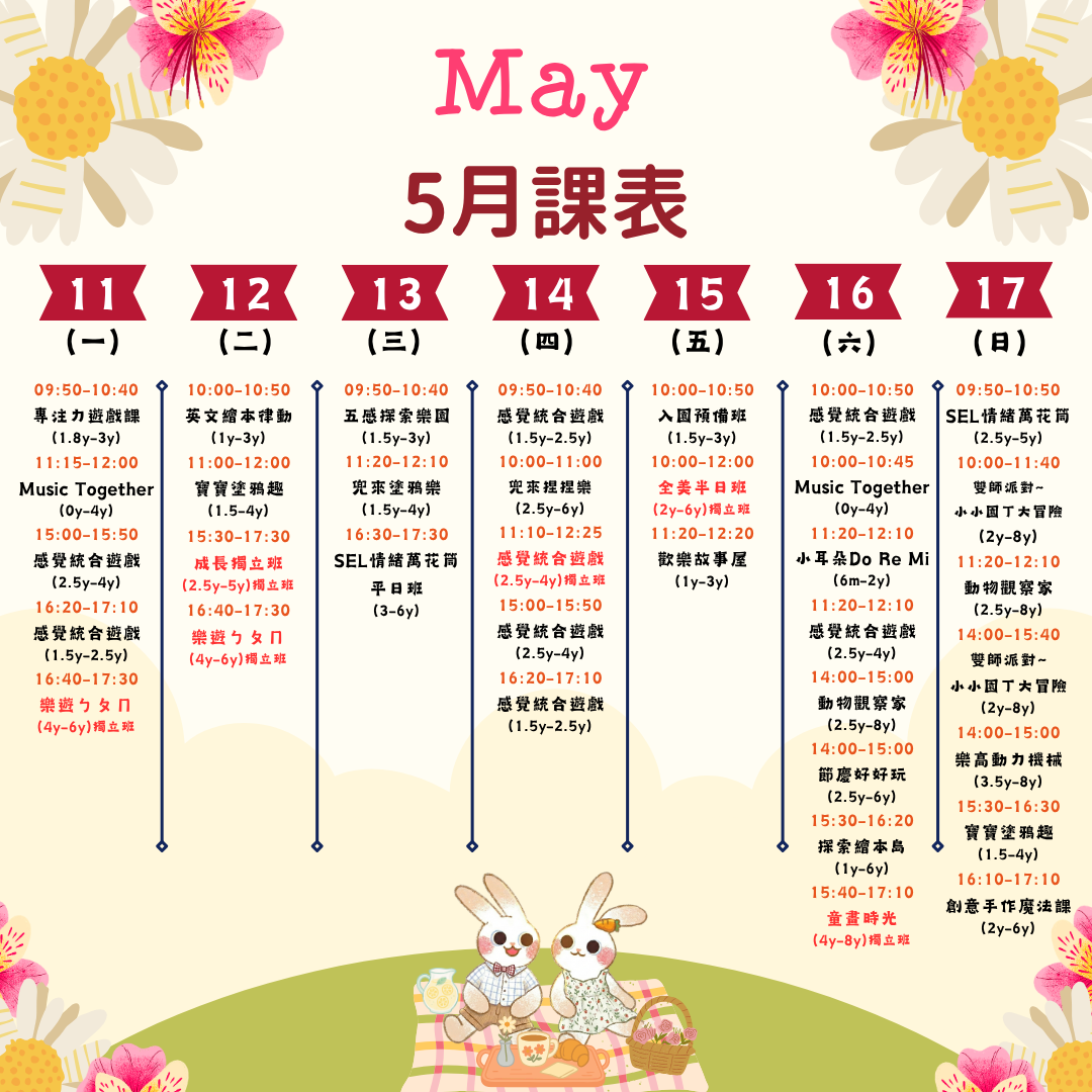 這週在兜樂玩什麼呢? 5/11 ~ 5/17 週一 MON 週二 TUE 週三 WED 週四 THU 週五 FRI 週六 SAT 週日 SUN 專注力遊戲課|1歲8個月-6歲 $720/3點 50 分 立即預約 特價 Music Together-春季班|0-4歲 NT$800 NT$720 45 分 立即預約 感覺統合遊戲大寶班 |2歲半-4歲 $720/3點 50 分 立即預約 感覺統合遊戲小寶班 |1歲半-2歲半 $720/3點 50 分 立即預約 英文繪本律動|1歲-4歲 $960/4點 50 分 立即預約 寶寶塗鴉趣|1歲半-4歲 $720/3點 60 分 立即預約 成長獨立班|2歲半-5歲 $1200/5點 2 小時 立即預約 五感探索樂園|1歲半-3歲 $720/3點 50 分 立即預約 兜來塗鴉樂|1歲半-4歲 $720/3點 50 分 立即預約 SEL情緒萬花筒平日班|1歲8個月-6歲 $720/3點 60 分 立即預約 感覺統合遊戲小寶班 |1歲半-2歲半 $720/3點 50 分 立即預約 兜來捏捏樂|2歲半-6歲 $720/3點 60 分 立即預約 感覺統合遊戲獨立班|2歲半-4歲 $1200/5點 75 分 立即預約 感覺統合遊戲大寶班 |2歲半-4歲 $720/3點 50 分 立即預約 特價 入園預備班週五班|1歲半-3歲 NT$8,160 NT$7,200 加入購物車 塗鴉大冒險|1歲-6歲 $720/3點 60 分 立即預約 全美半日班|2歲-6歲 $1440/6點 2 小時 立即預約 歡樂故事屋|1-3歲 $960/4點 60 分 立即預約 感覺統合遊戲小寶班 |1歲半-2歲半 $720/3點 50 分 立即預約 特價 Music Together-春季班|0-4歲 NT$800 NT$720 45 分 立即預約 小耳朵Do Re Mi|6個月-2歲 $720/3點 50 分 立即預約 感覺統合遊戲大寶班 |2歲半-4歲 $720/3點 50 分 立即預約 動物觀察家|2歲半-8歲 $960/4點 60 分 立即預約 節慶好好玩|2歲半-6歲 $960/4點 60 分 立即預約 探索繪本島|1歲-6歲 $960/4點 50 分 立即預約 童畫時光|4歲-8歲(獨立班) $960/4點 90 分 立即預約 SEL情緒萬花筒|2歲半-5歲 $720/3點 60 分 立即預約 小小園丁大冒險|雙語科學創藝派對|2歲-8歲 $1680/7點 100 分 立即預約 動物觀察家|2歲半-8歲 $960/4點 60 分 立即預約 樂高動力機械|3歲半-8歲 $960/4點 60 分 立即預約 寶寶塗鴉趣|1歲半-4歲 $720/3點 60 分 立即預約 創意手作魔法課(原名:聽故事玩手作)|2-6歲 $720/3點 60 分 立即預約