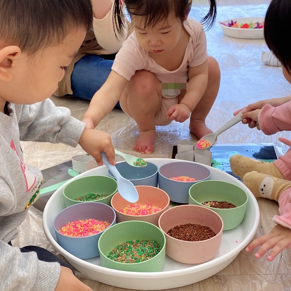 讓寶貝從藝術創作中探索顏色、感覺質地、享受創作。