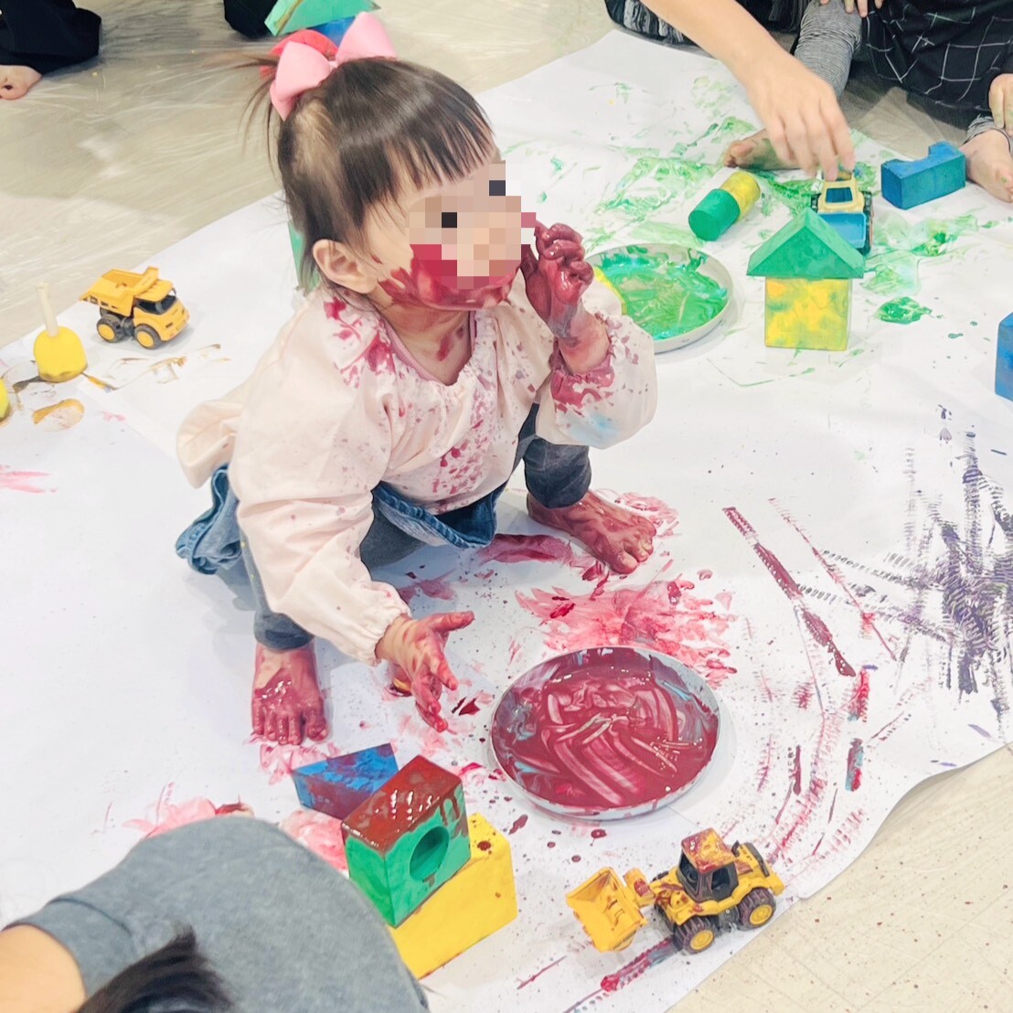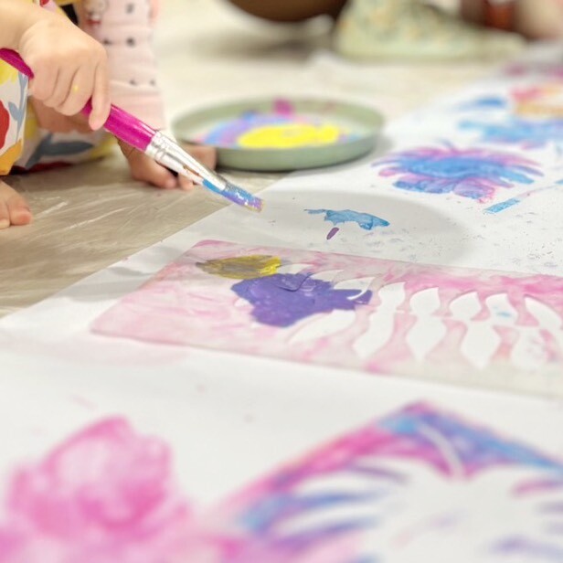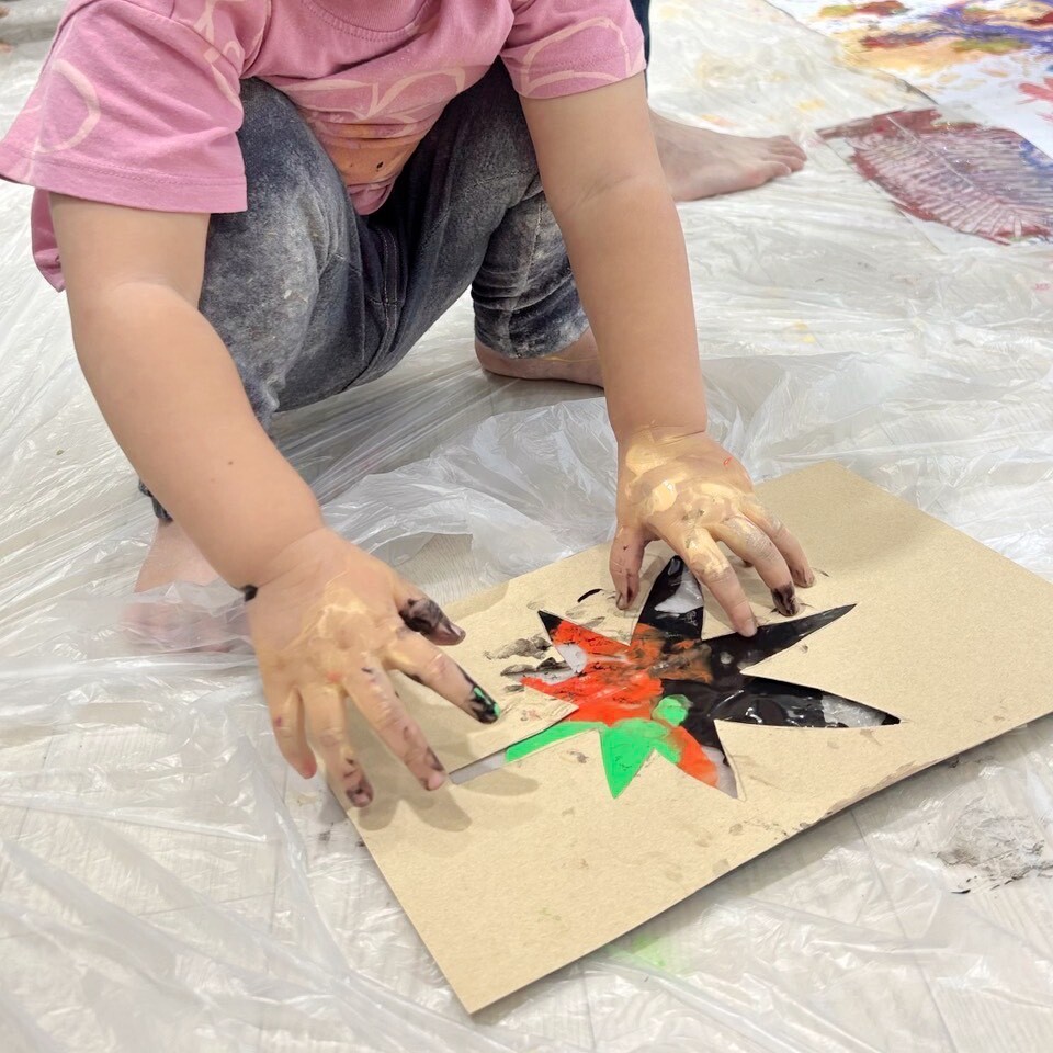 透過繪本故事的情境,結合五感素材提供孩子大量的感官刺激,讓孩子嘗試不同的觸覺刺激,有大動作的塗抹、擠壓、潑灑、小肌肉的搓撒、點觸等等。每次的課程將結合不同的生活素材及塗鴉工具,不僅能訓練孩子的手指小肌肉及精細動作,也能引導孩子發揮想像力、延伸創造力,天馬行空地盡情揮灑顏料創作!