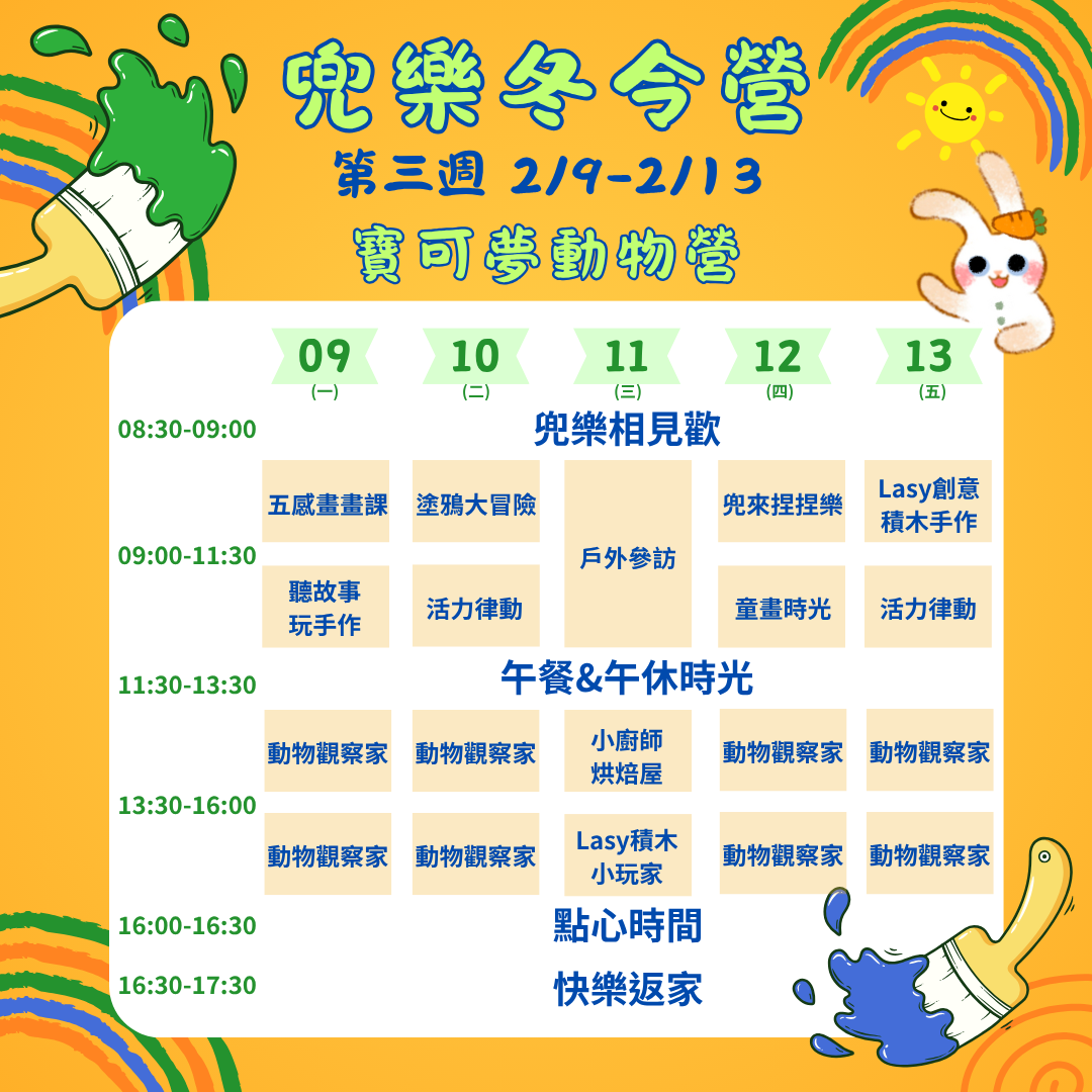 .上午半日營課程時間為09:00~11:30左右。(不含中午用餐與午睡)