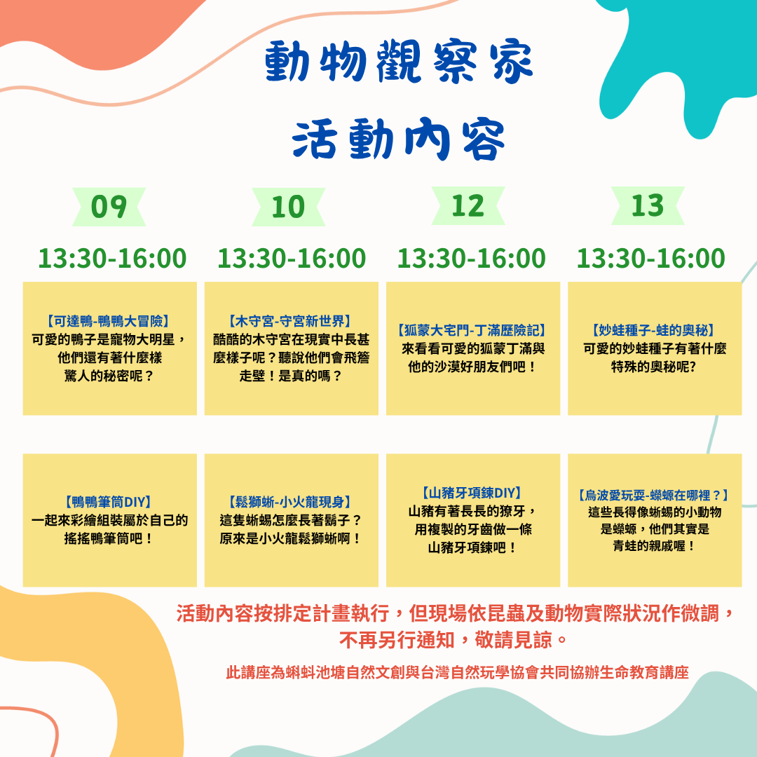 🎨 手作活動 × 藝術創作 × 動物觀察 一次滿足!