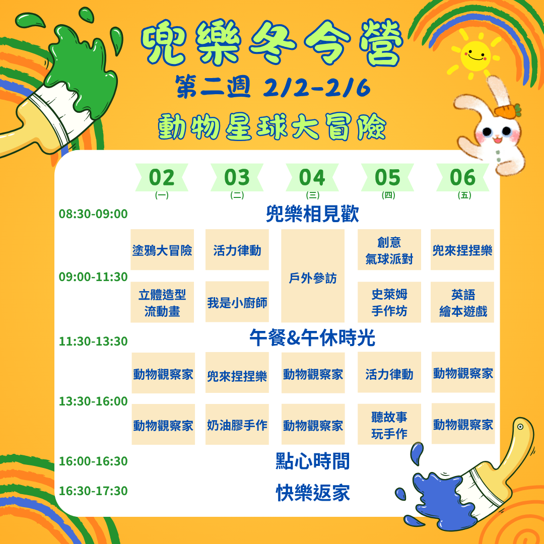 .僅參加下午半日營隊者最早到班時間13:30 最晚接回時間為下午17:30。