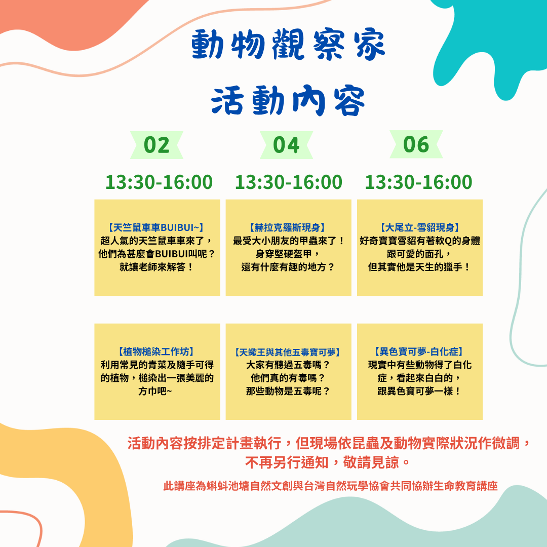 .因應疫情防疫相關措施及特殊課程授課內容/天氣等影響,主辦單位保有最終課程調整權利。