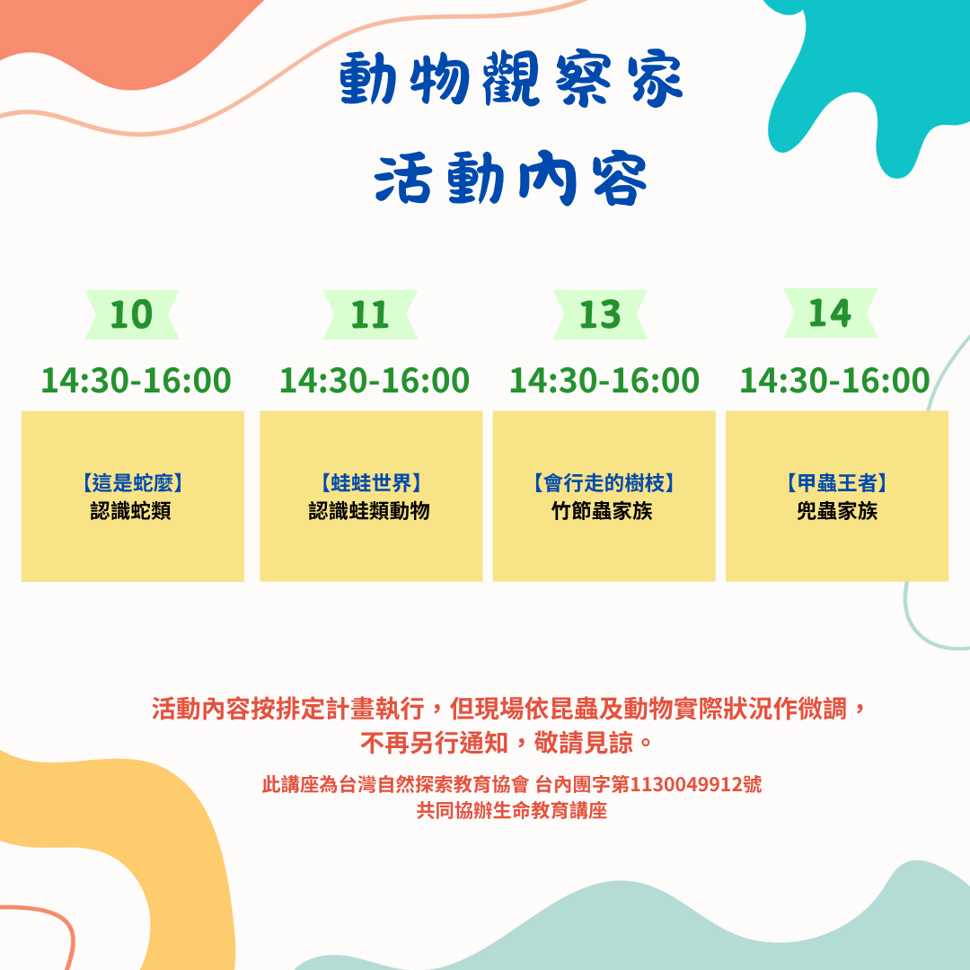 🔸動物觀察家:近距離觀察可愛動物,學習尊重生命與基礎生態知識