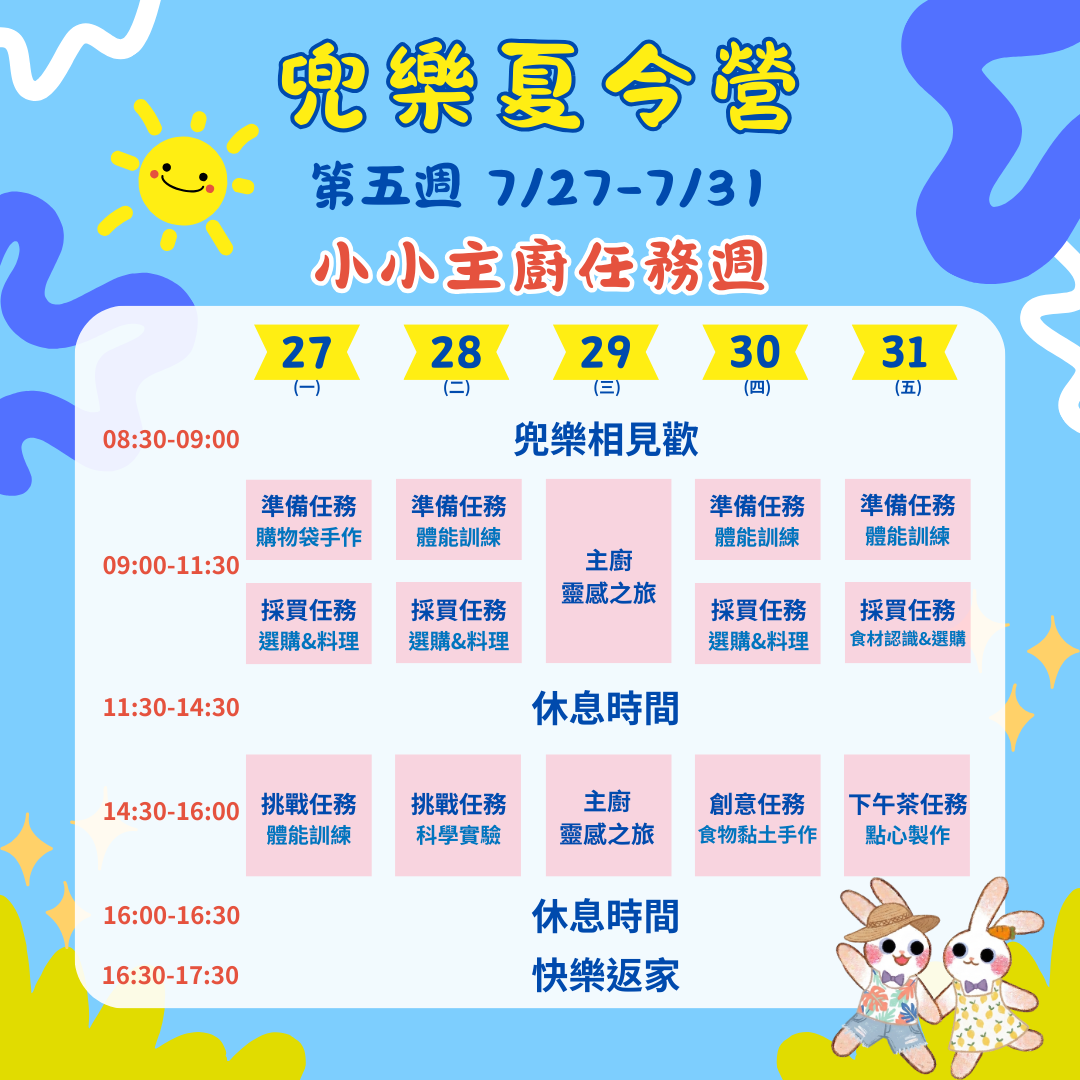 .僅參加下午半日營隊者最早到班時間14:30 最晚接回時間為下午17:30。