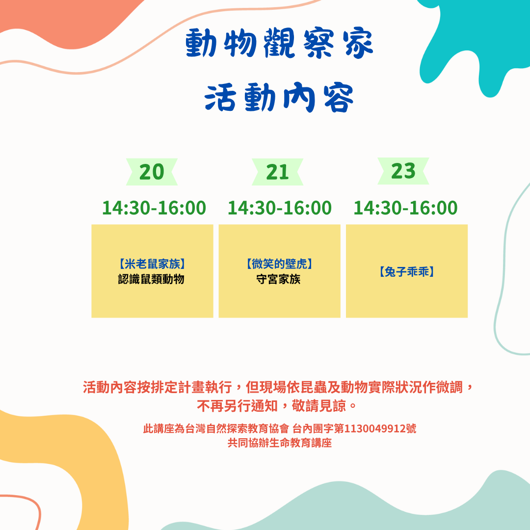 🔸動物觀察家:近距離觀察可愛動物,學習尊重生命與基礎生態知識